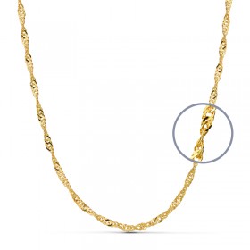 Cadena Singapur realizada en oro de primera ley, (750/ooo milésimas). Cadena modelo singapur ancha, largos disponibles de 60,00 - 50,00 y 45,00 centímetros y ancho de 2,70 milímetros.