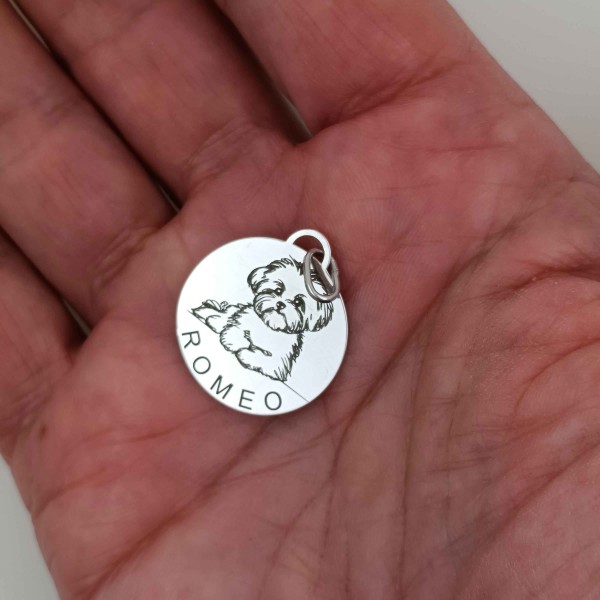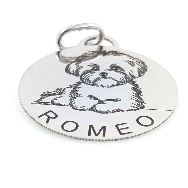 Customizable pendant featuring your Maltese's image in sterling silver. Keep your loyal pet close to you at all times.