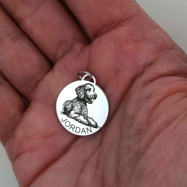 Sterling silver medal with your Spanish Water Dog's image for you